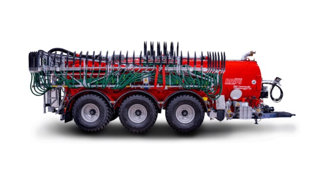 Les véhicules à lisier BRIRI « Field Commander » en version Tridem sont développés comme citernes à pompe dans une teinte RAL 6002 (vert feuillage) de série. Ils disposent d'une capacité allant jusqu'à 30 000 litres. Les tonnes à lisier convainquent par un équipement de base de haute qualité et une finition soignée. La construction autoportante associée à une cuve en acier résistante à la torsion garantit également une fiabilité et une longévité exceptionnelles.