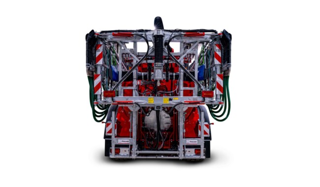 La pompe à piston rotatif est commandée en continu via l'hydraulique embarquée et réglée pour les quantités d'épandage souhaitées. Indépendamment de la vitesse de déplacement, la quantité réelle de lisier reste ainsi constamment stable. Avec la commande ISO-BUS de série, en association avec un capteur NIR optionnel, le dosage spécifique à la surface selon les éléments nutritifs peut être effectué. Selon la taille et la puissance de la pompe, des quantités d'épandage allant jusqu'à 9 000 litres/min sont possibles. La tonne à lisier constitue ainsi une alternative optimale à un automoteur.